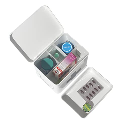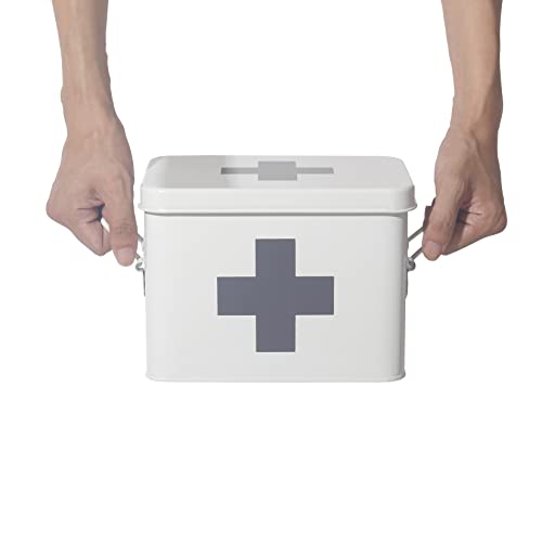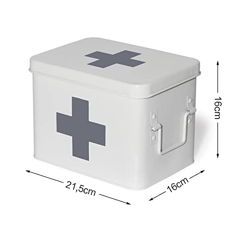 Theo&Cleo - Cassetta di primo soccorso, in metallo, per medicinali, stile retrò, 22 x 16 x 16 cm, colore: bianco