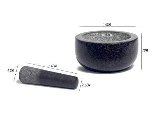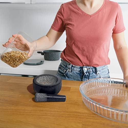 Theo&Cleo Mortar e pestello in granito naturale, per macinare spezie, aglio, chicchi di caffè e altre spezie, nero