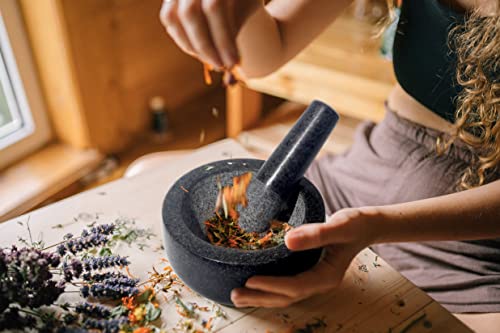Consigli per la pulizia: dopo l'uso pulire il mortaio e il pestello solo con acqua tiepida e asciugare all'aria. Non pulire con sapone o detergente per evitare residui di sapone.