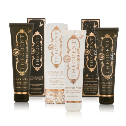 Theodent Familiy Pack - set di 3 Dentifrici (Classic, Kids & 300) - Dentifricio naturale per remineralizzazione e riduzione della sensibilità, sbiancante