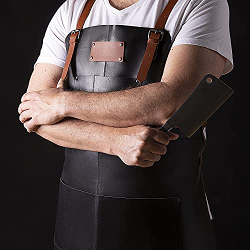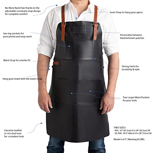 LA TAGLIA CONTA: Con 2 taglie disponibili, i nostri grembiuli in vera pelle nera ti verranno bene. La taglia standard misura 32" (81.5cm) lunghezza x 24" (62.5cm) larghezza ed è adatta alle taglie L. Il grembiule plus size misura 34.5" (88cm) lunghezza x 28" (72cm) larghezza, ed è adatto alle taglie XL
