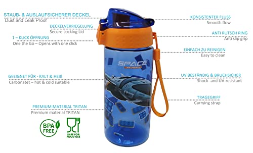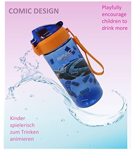 Theonoi Borraccia per bambini, a prova di perdite, infrangibile, leggera, in Tritan, senza BPA, 500 ml, per scuola, asilo, sport (Space Battle)