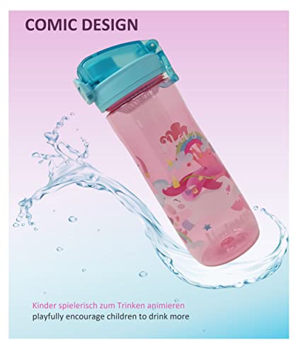 Theonoi Unicorn Unicorn - Borraccia a prova di perdite per bambini, con infusore per frutta, senza BPA, 600 ml, per scuola, parco giochi, sport e attività all'aria aperta