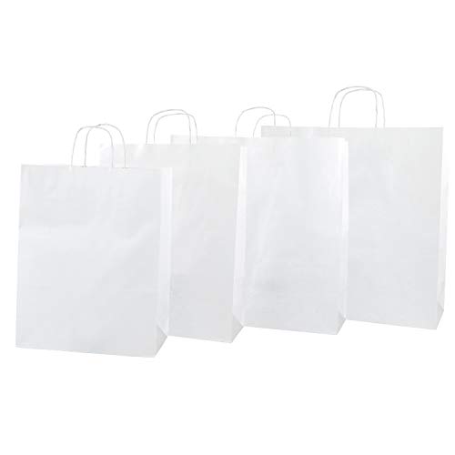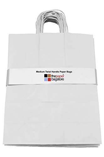 Thepaperbagstore 25 Sacchetti di Carta Bianchi, Riciclabili e Riutilizzabili, Robusti, con Manici Intrecciati - Medi - 250x110x310mm