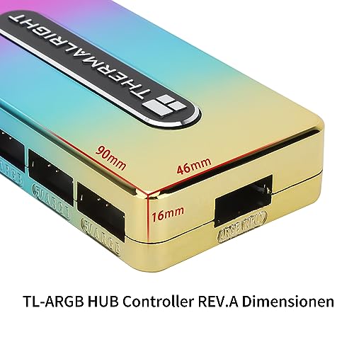 Prestazioni stabili: il sincronizzatore di luce ARGB è uscita diretta SATA, in condizioni di carico elevato, può mantenere un'uscita stabile, dimensioni compatte, superficie superiore con logo Thermalrigh inciso, colore complessivo, funzione stabile