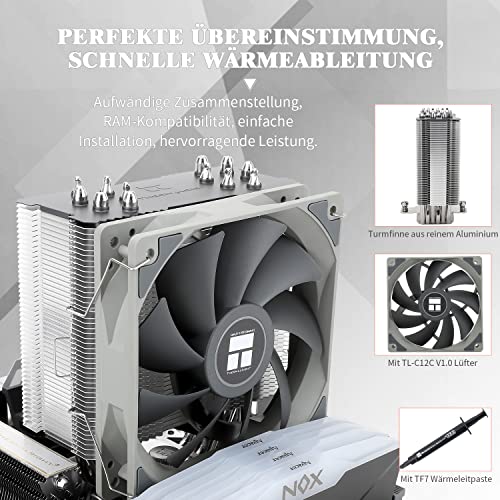 Thermalright BA120 Raffreddatore ad aria per CPU, 6 tubi di calore, TL-C12C PWM Raffreddatore per CPU a ventola silenziosa con cuscinetto S-FDB, per AMD AM4/Intel LGA 1700/1150/1151/1200, PC