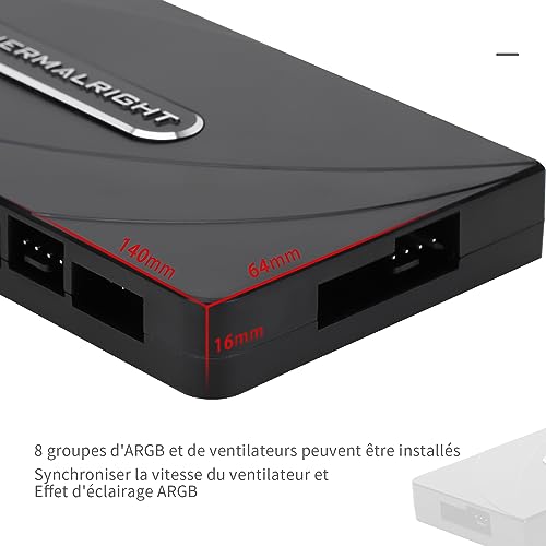 Thermalright Supporto controller per fan ARGB e HUB a 8 porte, 3 pin, 5 V, forte pasta + aspirazione magnetica, cavo di alimentazione SATA ingresso diretto (12 V 4 pin RGB non supportato)