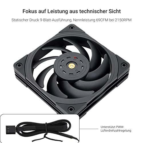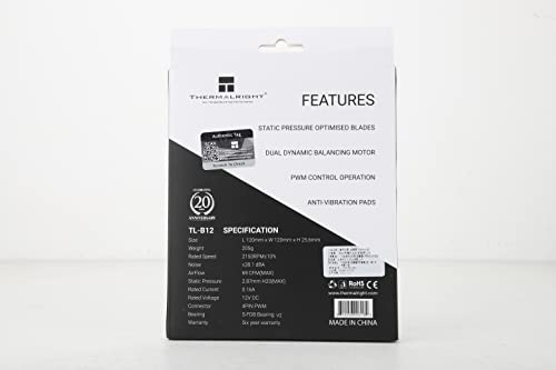 Thermalright TL-B12 - Ventola di raffreddamento CPU da 120 mm, ventola di raffreddamento del computer, controllo PWM, 2150 giri/min, pressione statica per cuscinetti S-FDB (nero)