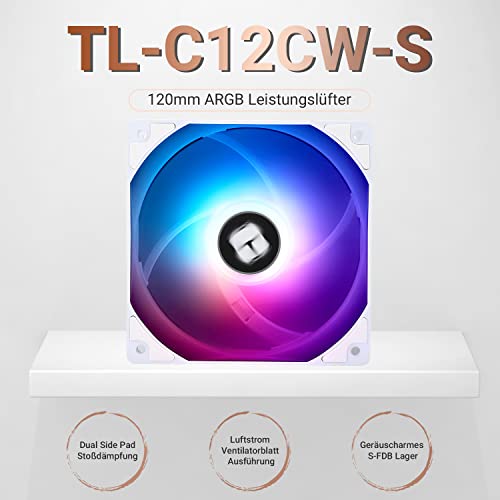 Thermalright TL-C12CW-S - Ventola per CPU da 120 mm, colore bianco, ARGB