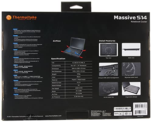 Thermaltake Massive S14 notebook cooling pad 38.1 cm (15) 1000 RPM Black