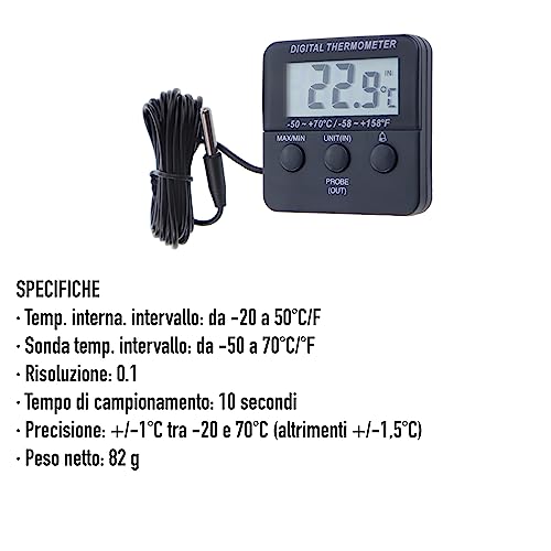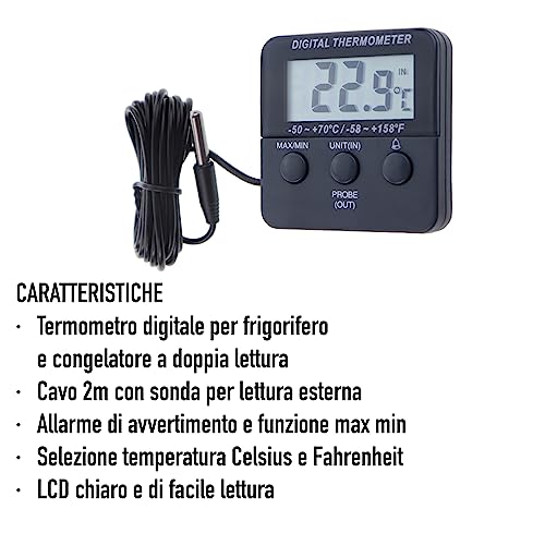 Thermometer World Termometro digitale da frigorifero con allarme di temperatura e termometro massimo minimo per frigorifero e congelatore per monitorare la conservazione degli alimenti refrigerati