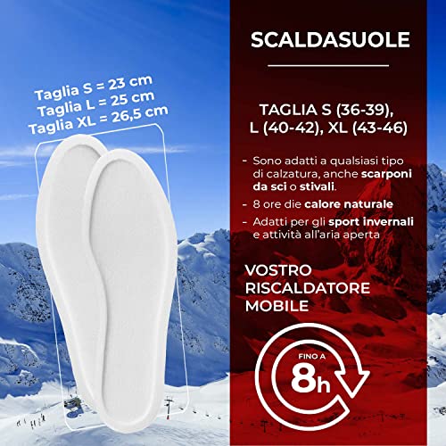5 PAIA DI SCALDASUOLE - TAGLIA S (36-39): Mai più piedi freddi! Gli scaldasuole sono adatti a qualsiasi tipo di calzatura, anche scarponi da sci o stivali. Ideale per gli sport invernali o le attività quotidiane, per l'escursionismo o il ciclismo.