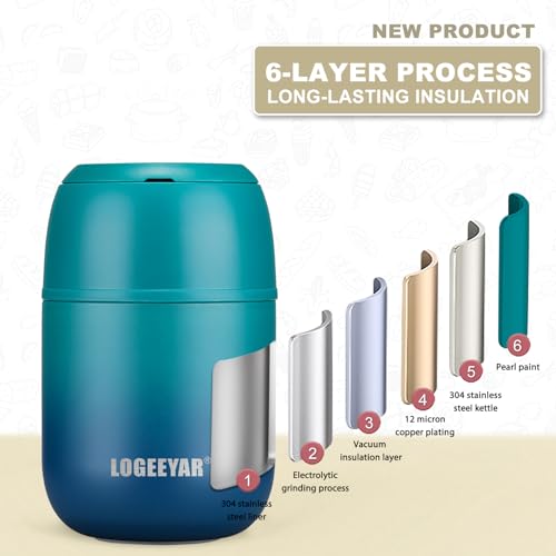 Il contenitore termico per alimenti è dotato di un isolamento sottovuoto a doppia parete in grado di mantenere il cibo caldo per 12 ore e freddo per 24 ore. La brocca termica per il pranzo è completamente sigillata per evitare incidenti di versamento (100% a prova di perdite).