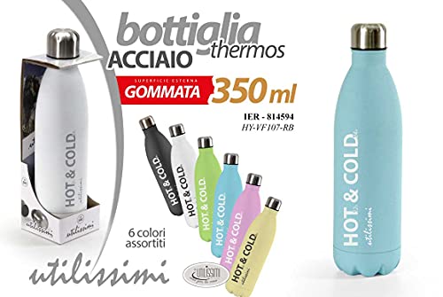 Thermos bottiglia liquidi in acciaio inox superfice esterna gommata 350 ml per bevande caffè bottiglia termica hot&cold colori assortiti IER- 814594