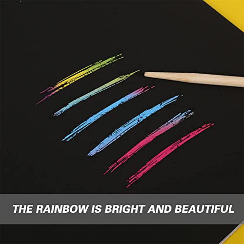 Facile da creare: Il quaderno per schizzi può sembrare tutto nero, ma con un semplice graffio con penna in legno, rivelerai il bellissimo arcobaleno sotto! Funziona come magia. Molto divertente da disegnare sia per bambini che per adulti