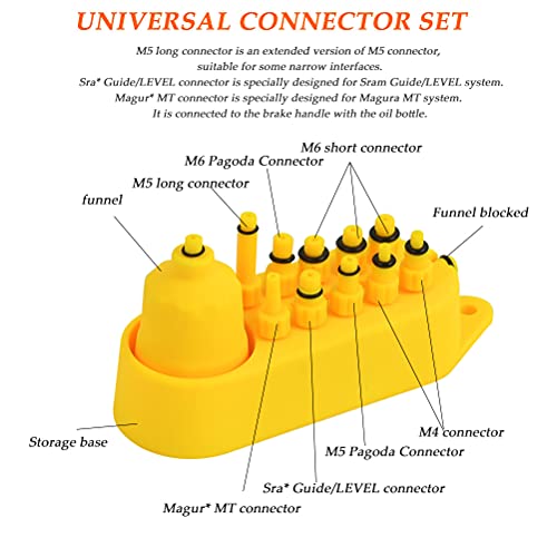 【Kit completo di attrezzi per il cambio dell'olio per freni a disco】 Il versatile kit di connettori può essere collegato alla bottiglia dell'olio e alla siringa contemporaneamente ed è persino compatibile con molti oli di sollevamento e lubrificazione della forcella anteriore.