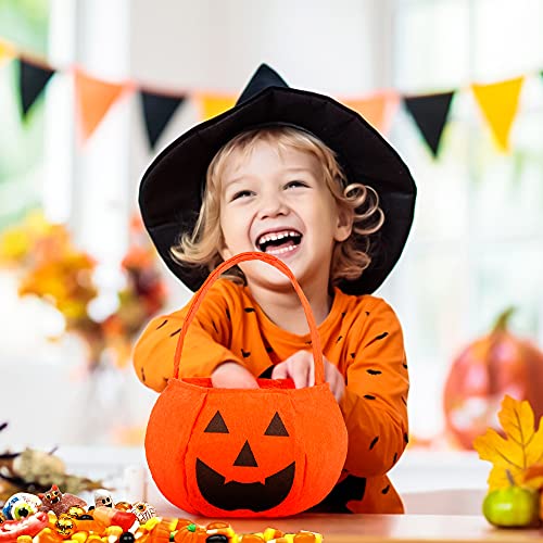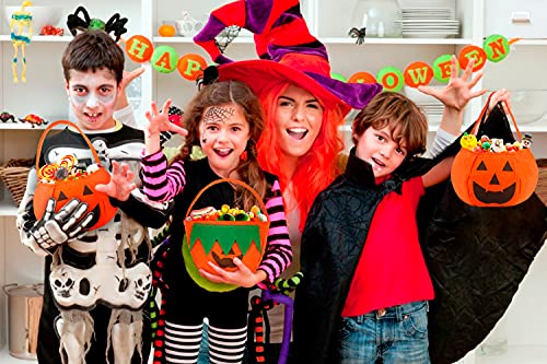 【4 pezzi di sacchetti per l'elemosina per bambini】: modelli di zucca arancione, verde e nera. Il design del motivo di Halloween lo rende carino e speciale per i ragazzi o le ragazze che fanno dolcetto o scherzetto all'aperto alle feste di Halloween o in maschera.