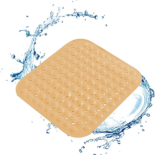 Thickoad Tappetino da doccia, tappetino da bagno antiscivolo, tappetino da bagno quadrato, antiscivolo con fori di scarico e ventose, per bagno, hotel, vasca da bagno (beige, 46 x 46 cm)