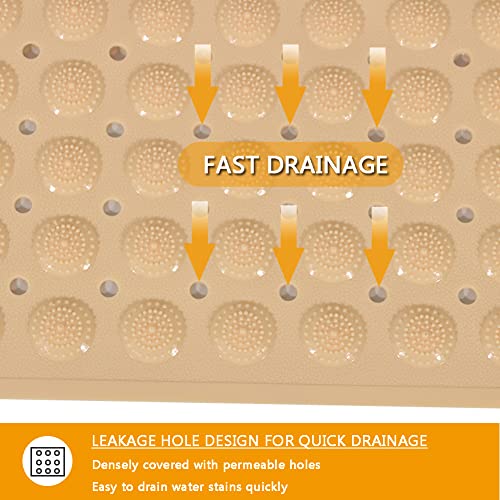 Tappetino da doccia antiscivolo con fori di scarico: questo tappetino da bagno antiscivolo ha 96 piccoli fori per drenare rapidamente l'acqua, consentendo di circolare e ridurre l'umidità superficiale durante la doccia. fornendo un'eccellente copertura completa. Rispetto a molti altri tappetini da doccia, questo tappetino da bagno si adatta meglio e offre più spazio per godersi la doccia