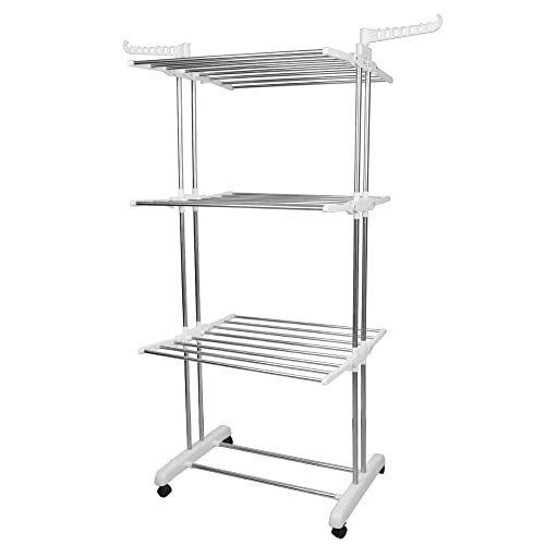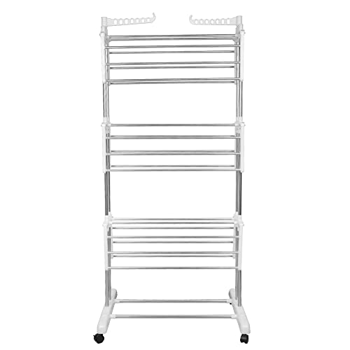THINFAR Stendino, 4 Livelli Stendibiancheria Verticale Allungabile con Ruote, Acciaio Inossidabile Stendino da Balcone Esterno, Stendipanni per Interno (72*64*170cm bianco)