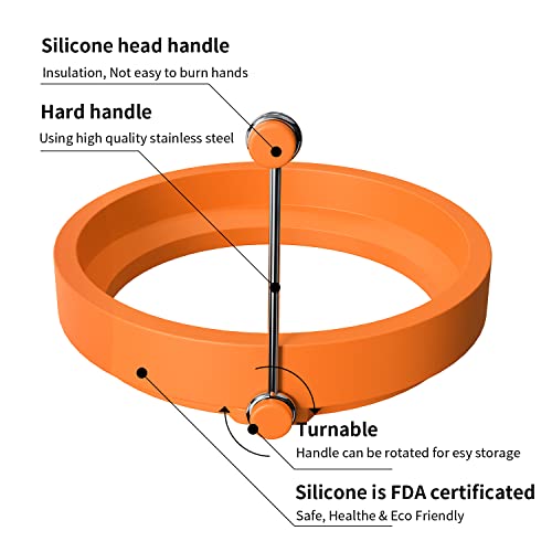 New Thinking - Anello per uova / stampo per pancake, in silicone Stampo per cottura pancake antiaderente, anello in silicone con manico, confezione da 4. Orange