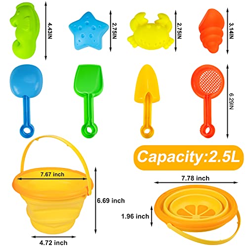ThinkMax 11Pcs Giocattolo della Spiaggia per i Bambini, Spiaggia di Sabbia Playest Insieme Include Pieghevole Secchio, Stampi Animali, Pala Sabbia Kit Strumenti (11pcs)