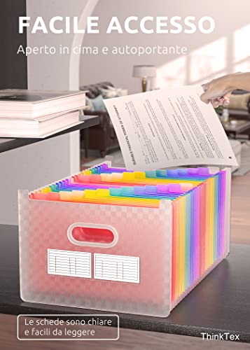 PORTATILE ED ESPANDIBILE - Organizzatore di file a fisarmonica ThinkTex, 24 tasche, schede multicolore A-Z, parte superiore aperta, per A4
