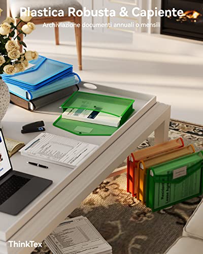 ThinkTex Cartella Portadocumenti Plastica A4, Organizzatore di Espansione Senza Divisori, Trasparenti, Chiusura con Bottone a Pressione, Multicolore
