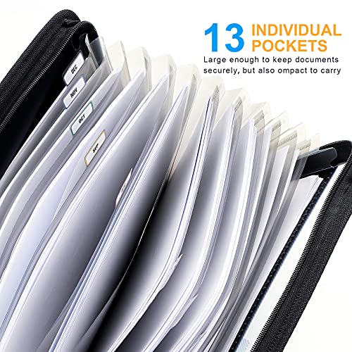 ThinkTex 13 Tasche a Fisarmonica,Cartella Portadocumenti A4,con Etichette Adesive,Porta Documenti Espandibile Cerniera,Portatile Faldoni Archivio Fisarmonica,Raccoglitore Impermeabile (Nero)