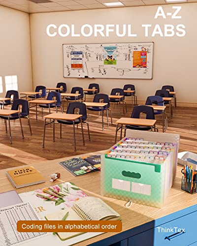 ThinkTex 26 Tasche Raccoglitore Documenti Espandibile,A4 Cartellina Porta Documenti/Organizzatore Portadocumenti Da Scrivania,Multicolore Fisarmonica Faldoni per Ufficio Scuola Casa Viaggio (verde)