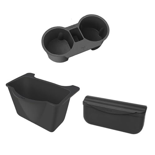 ThinsGo Tesla Model Y Portabicchieri in silicone Scatola portaoggetti per console centrale di seconda fila, 3 pezzi