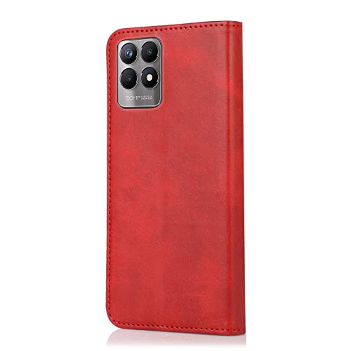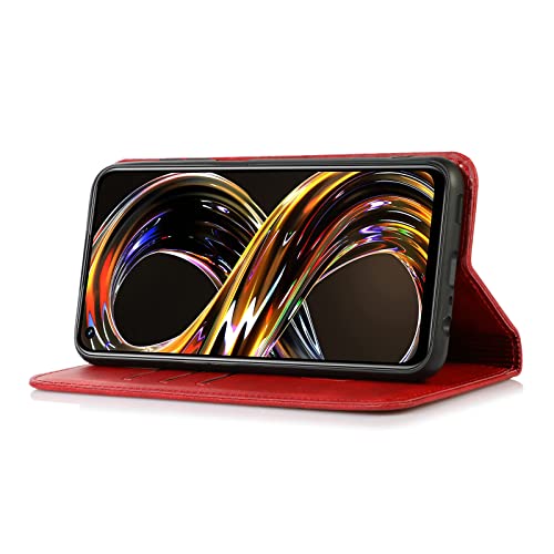 THIYUFUNS Cover a Libro in Pelle Realme 8i con Vetro Temperato,Custodia PU Portafoglio Flip Magnetica Wallet Per Realme 8i - Rosso
