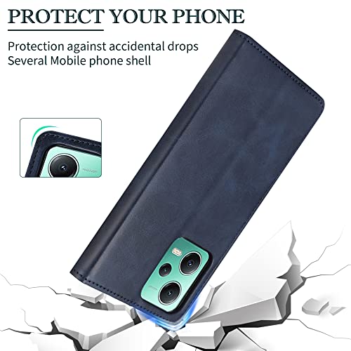 THIYUFUNS Cover a Libro in Pelle Xiaomi Redmi Note 12 5G / Poco X5 con Vetro Temperato,Custodia PU Portafoglio Flip Magnetica Wallet Per Xiaomi Redmi Note 12 5G / Poco X5 - Blu