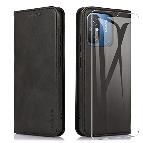 THIYUFUNS Cover a Libro in Pelle Xiaomi Redmi 12C / 11A con Vetro Temperato,Custodia PU Portafoglio Flip Magnetica Wallet Per Xiaomi Redmi 12C / 11A - Nero