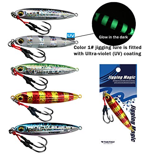 THKFISH Esche da Pesca Jigging Cucchiaio di Acqua Dolce di Mare d'Acqua Dolce Esca Dura Pesca al Mare jigs per Trota Bass Salmone tonno (Colore 2# - 1 Pezzo, 80g)