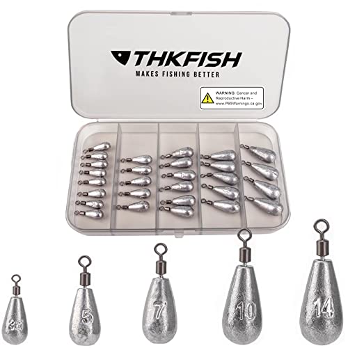 THKFISH Pesi da Pesca Pesca Sinker Drop Shot Pesi Pesi Kit Drop Shot Rig Wacky Ganci Offset Attrezzatura da Pesca D-28pcs-Waterdrop Shape