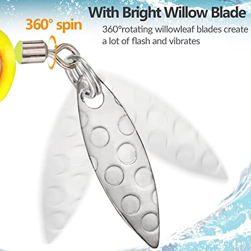 【JIG HEADS DI QUALITÀ】 Le Jig Head hanno lame a foglia di salice che ruotano a 360° per creare un sacco di flash. Le lame vibrano e riflettono la luce nell'acqua, il pesce bersaglio non può resistere. Il custode dell'esca antiscivolo è progettato per un facile attacco dell'esca, che può impedire ai vermi da pesca di scivolare giù dalle maschere di pesca.