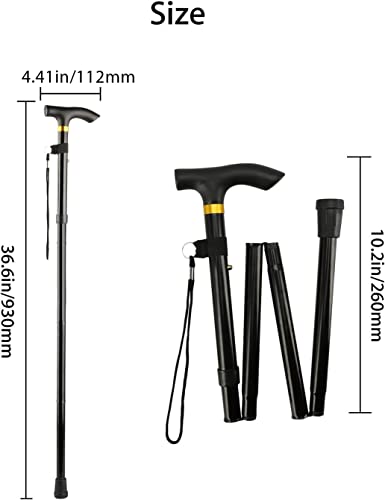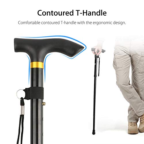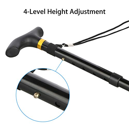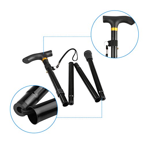 Thlevel Bastone da Passeggio Pieghevole in Alluminio Regolabile 84-93 cm Bastone per Anziani - Antiscivolo, Leggero, Portatore e Durevole - per Escursionismo, Camminata, Viaggio, Adulto Unisex, Nero