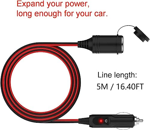 Thlevel 5M Prolunga per Accendisigari Auto per Presa Accendisigari per Auto, Cavo di Prolunga per Accendisigari [20AWG / 15A / 12V / 24V]