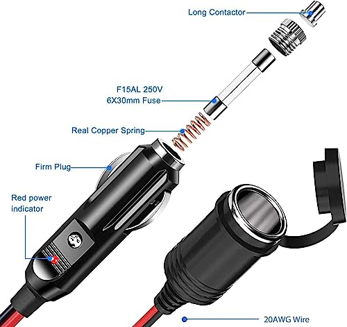 【Alta qualità】Il cavo dell'accendisigari è realizzato con un filo di rame di alta qualità, utilizzando un doppio strato di PVC e una buona tecnologia, resistenza alle alte temperature, resistenza alla fusione e può essere piegato più di 4000 volte.