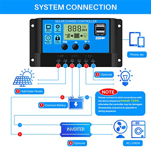 【Facile da usare】 Il regolatore carica pannello solare è facile da installare e funzionare, adatti a casa, industriale, commerciale, ecc. Se hai domande dopo l'acquisto, puoi contattarci tramite e-mail.