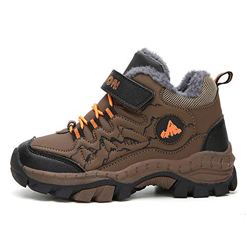 Thlppe Scarponi Neve per Ragazzi Ragazze Invernali Scarpe da Trekking Caldo Scarpe da Escursionismo Antiscivolo Montagna Escursionismo Sneaker Outdoor Stivali da Escursionismo Marrone 31EU