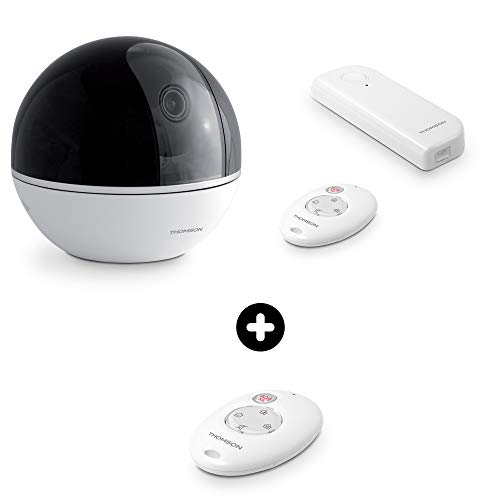 Thomson 512501 - Telecamera per interni, installazione"Plug&Play", semplice e veloce con l'aiuto del QRCode, scheda microSD inserita (non inclusa)