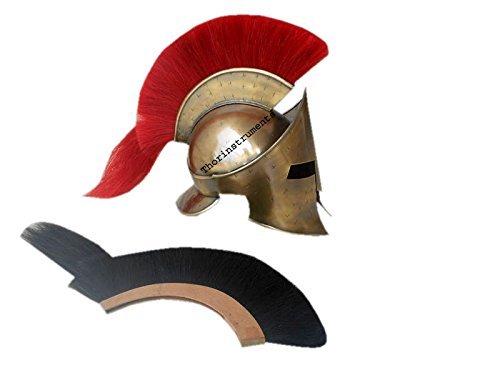 Thor Instruments.Co Replica casco greco spartano con piuma rossa del re Leonida in 300, finitura in ottone anticato