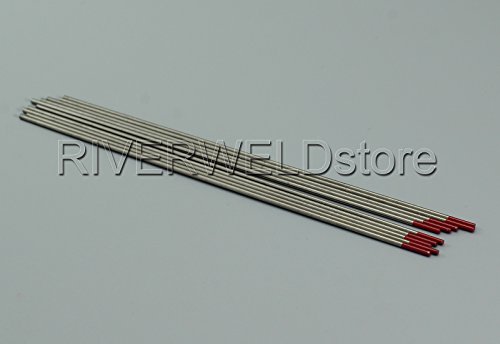2% thoriated WT20 rosso saldatura TIG elettrodi tungsteno, 1,6mm x 175mm & 1/16"x7",confezione da 10