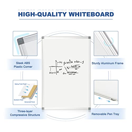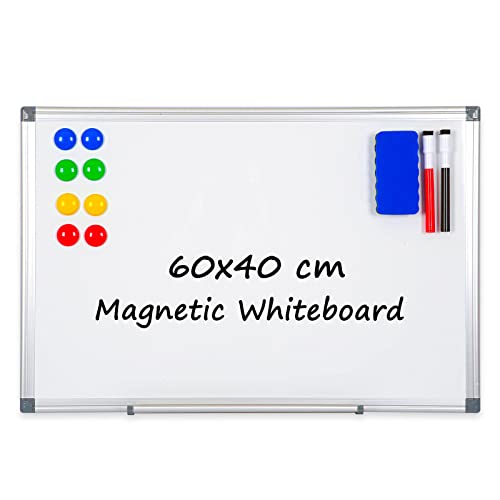 4 THOUGHT Lavagna bianca magnetica per lavagna cancellabile a secco (60x40) con cornice in alluminio, montaggio a parete, con 1 vassoio per penne, 2 pennarelli e 8 magneti, scuola, casa