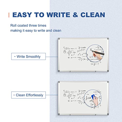 Il telaio in alluminio argentato di alta qualità con 4 angoli in plastica ABS rende la lavagna magnetica più forte della normale lavagna bianca con cornice in legno. Anche in caso di collisione, il telaio in alluminio non si danneggia facilmente. E gli angoli arrotondati in plastica ABS proteggeranno la sicurezza degli utenti. È possibile utilizzare in modo sicuro questa lavagna bianca magnetica per anni senza deformazioni.