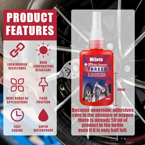 【Nota】Poiché il threadlocker M-271 si solidificherà in assenza di aria, il riempimento completo della bottiglia causerà la solidificazione della colla, quindi metà della bottiglia è vuota, ma nella bottiglia sono già presenti 50 ml di prodotto. Questa colla è adatta solo per fili metallici e richiede 24 ore per polimerizzare.