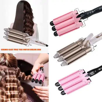 Three Tube Curling Triple Barrel Wave Water Ripple Rolls Electric Hair Curler US Fast Heating Corrugated Hair Straightener