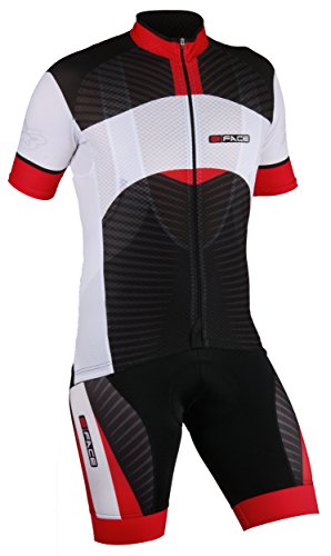 Threeface Completo Estivo Ciclismo Maglia + Salopette Axe Traspirante Abbigliamento Bici Rosso (M)